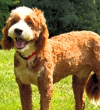We are in love with Timber! He is the best behaved, loving, and people loving dog. He picked up on all of his training so quickly. I have always loved the Red Bernedoodles and am looking forward to adding them to my program. Just wait until you meet his puppies!!
